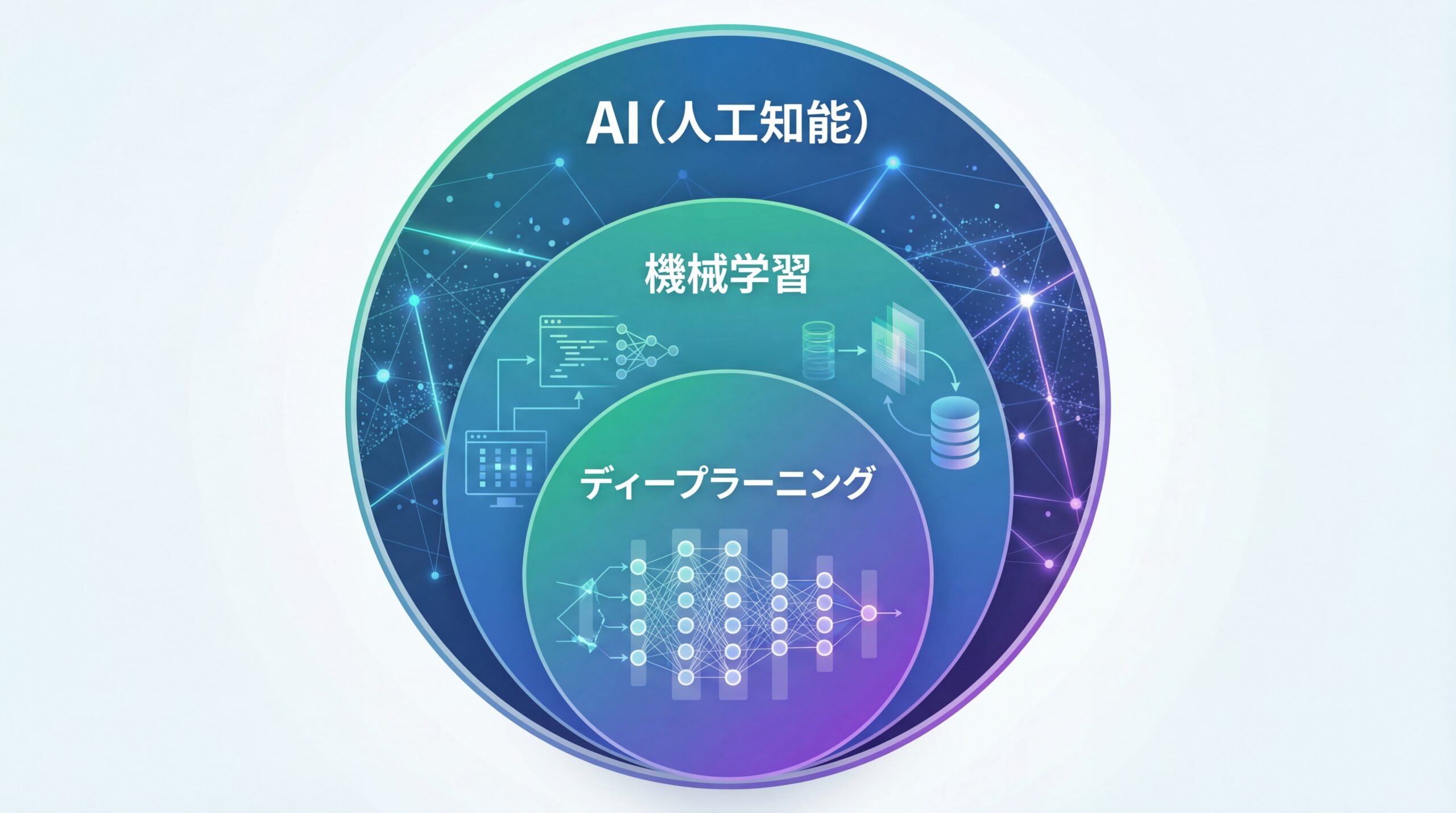 「ディープラーニングという言葉も聞くけど、どう違うの?」このような疑問をお持ちではないでしょうか。AI技術がビジネスに不可欠となる中、これらの用語を正確に理解することは、事業成長の第一歩です。