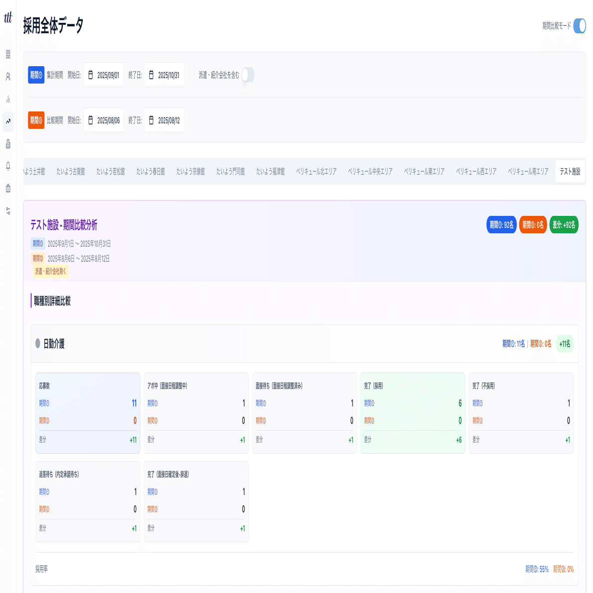 一つのシステム内で一元管理できるように(テストデータ)