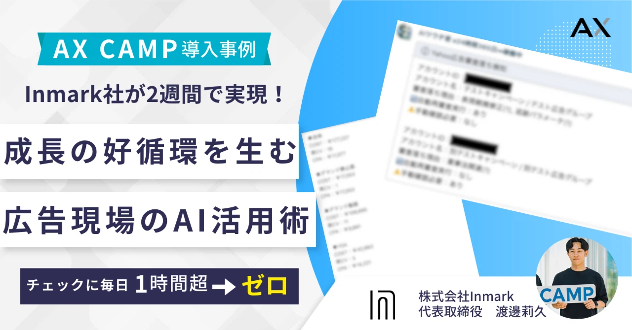 今回は、広告運用における定型的なチェック業務をAIで自動化し、生まれた時間をさらなるスキルアップに投資することで、事業成長の好循環を生み出した株式会社Inmark様の事例をご紹介しました。