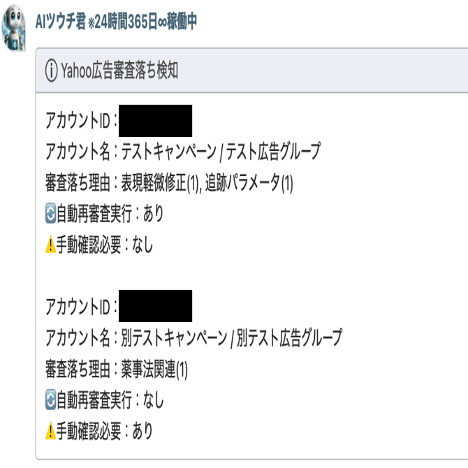 導入後わずか2週間で、Google広告の主要な数値を15分に1回、自動でChatworkに通知してくれるBotを自社で開発できました。これによって、私たちが能動的に管理画面を見に行く作業は完全になくなりました。