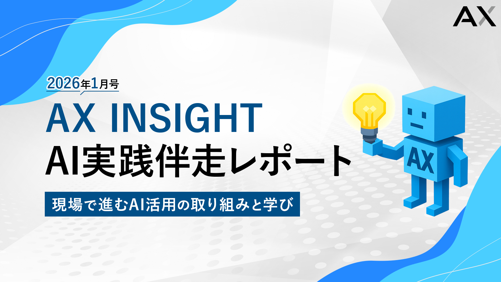 株式会社AXは、月次レポート「AX INSIGHT|AI実践伴走レポート 2026年1月号」を公開しました。本号では、MCPやNotion AIの実践的な活用を扱った勉強会の内容や、広告運用・物流など多様な業界で進むAI活用支援の最新事例を紹介しています。