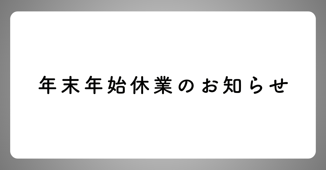 誠に勝手ながら、当社は下記の期間を年末年始の休業とさせていただきます。