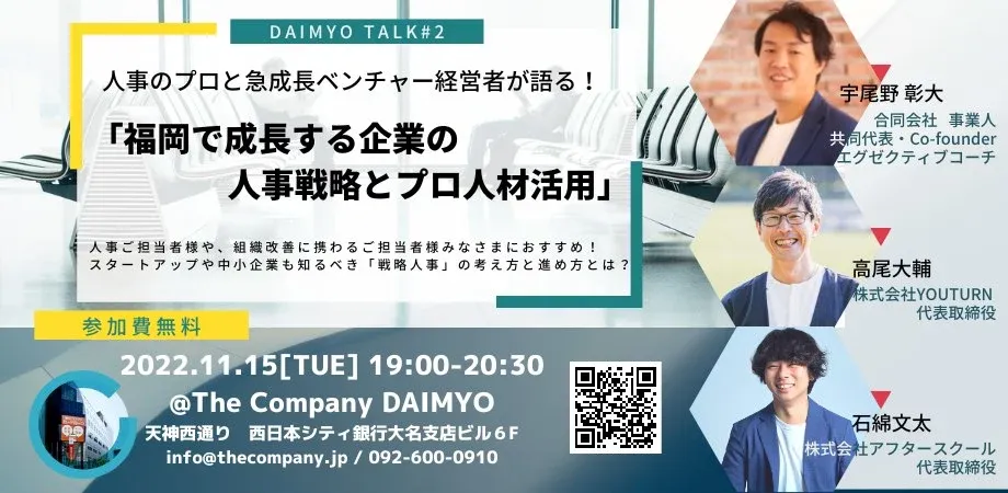 【DAIMYO TALK #2】人事のプロと急成長ベンチャー経営者が語る「福岡で成長する企業の人事戦略とプロ人材活用」に登壇したことを報告致します!