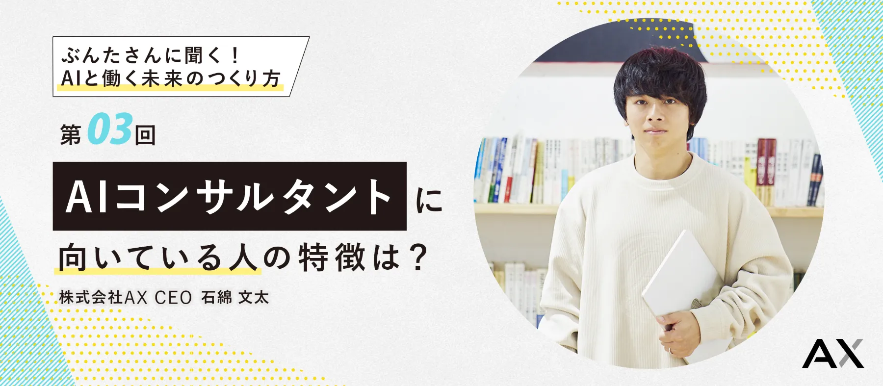 株式会社AXのWantedly連載第3回として、代表・石綿文太が「AIコンサルタントに向いている人の特徴」について語ります。
