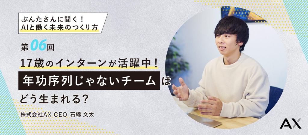 【第6回】代表・ぶんたさんに聞く!AIと働く未来のつくり方〜17歳のインターンが活躍中!年功序列じゃないチームはどう生まれる?〜