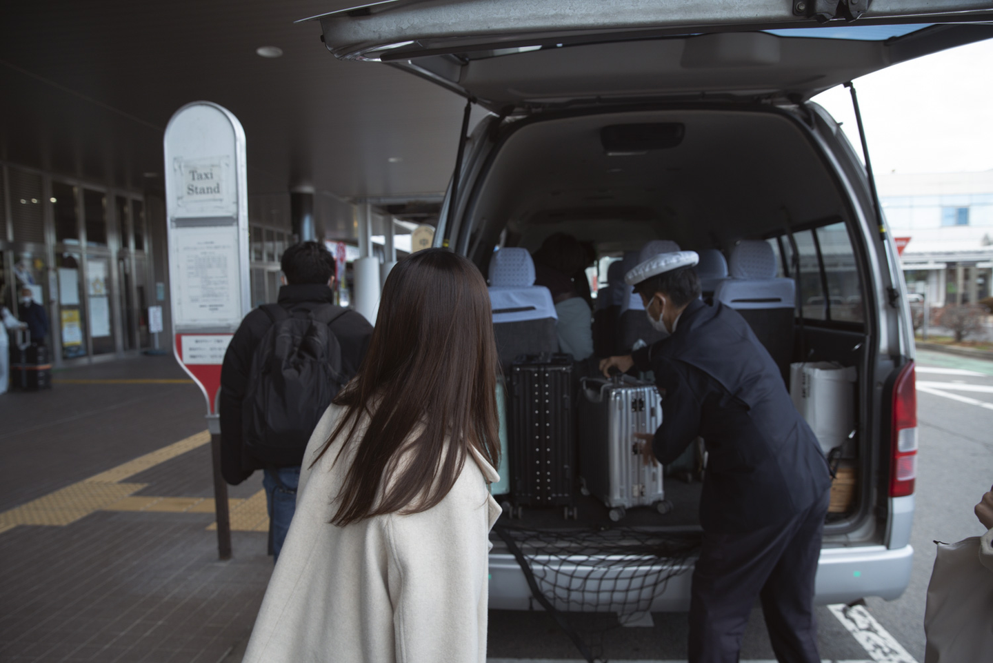 上毛高原駅に着くと、そこからはジャンボタクシーに乗り換えて山道を進みます。