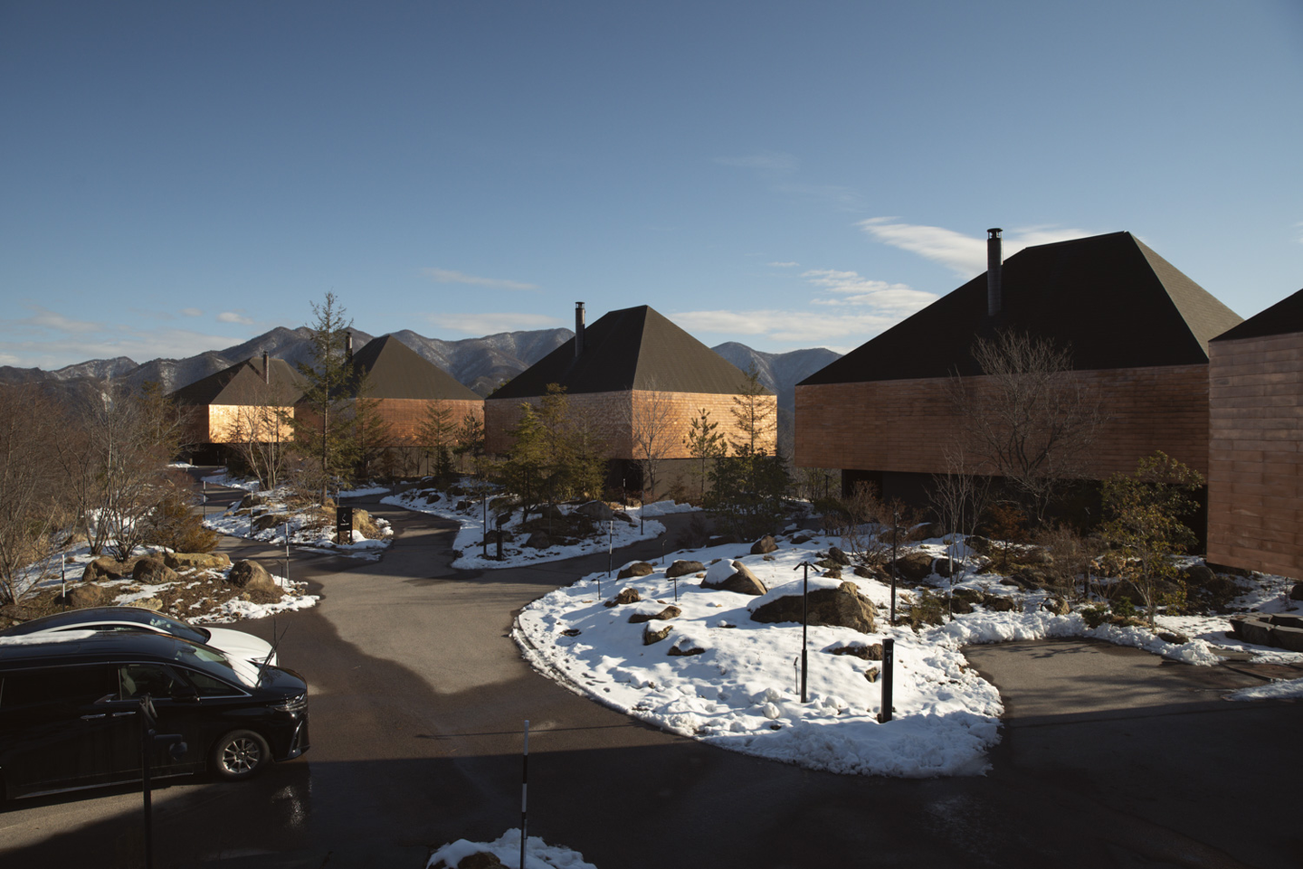 銅板の外壁が印象的な宿泊棟が点在し、少し離れた場所にレストラン棟があるつくり。今回は人数の関係で2棟を借りていて、みんなで集まれるけれど、近すぎない距離感がちょうどよかったです。
