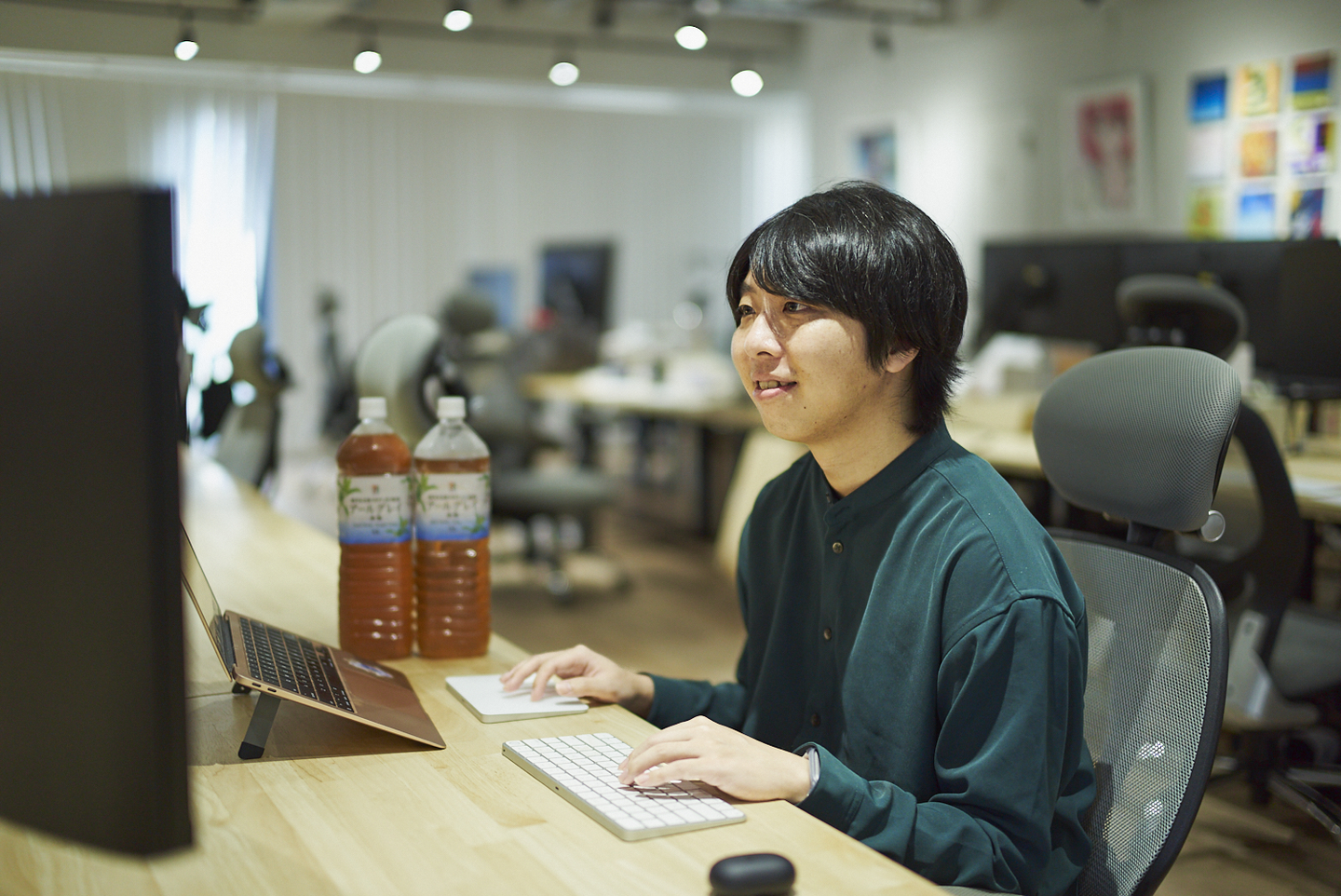 「要件定義やすり合わせなど、人と話す必要がある時は福岡のオフィスで。逆に、黙々と作業に集中したい時は埼玉の自宅で。この切り替えが僕には合っています。埼玉の家は起きてすぐ横にデスクとウォーターサーバーがあるので、最強の作業環境なんですよ(笑)」